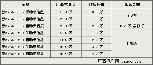 馬自達(dá)3是馬自達(dá)旗下的一款突出運(yùn)動(dòng)性能的經(jīng)濟(jì)型轎車,憑借出色的動(dòng)力性能以及動(dòng)感飽滿時(shí)尚的外形贏得了廣大消費(fèi)者的親睞。目前在中國(guó)地區(qū)銷售的馬自達(dá)3車型分為兩廂和三廂車型,兩廂車型為進(jìn)口車型,三廂則為國(guó)產(chǎn)車型。在剛剛閉幕的廣州國(guó)際車展上,馬自達(dá)展出了全新兩廂馬自達(dá)3車型,該車型將于明年1月份正式上市銷售。近日我們了解到,全新的三廂馬自達(dá)3已經(jīng)在臺(tái)灣地區(qū)正式國(guó)產(chǎn)。同時(shí)我們也從長(zhǎng)安馬自達(dá)4S店內(nèi)部人士處獲悉到,全新一代的三廂馬自達(dá)3將于明年下半年投產(chǎn)。根據(jù)網(wǎng)上車市價(jià)格監(jiān)測(cè)系統(tǒng)顯示,三廂馬自達(dá)3售價(jià)也出現(xiàn)了較大的浮動(dòng),最高優(yōu)惠近1.6萬(wàn)元。