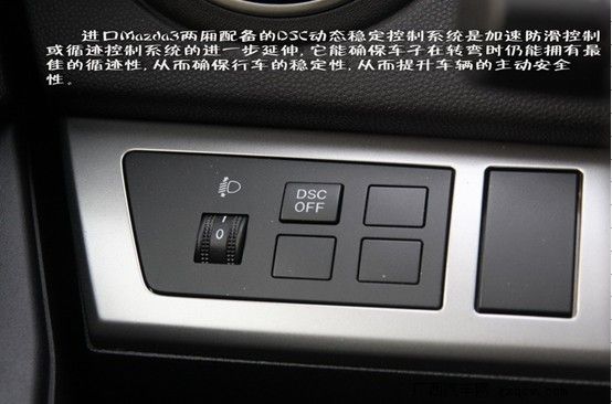 在主動安全配置方面,進口Mazda3兩廂的配置相當豐富。高位剎車燈以及外后視鏡轉(zhuǎn)向燈則為行車安全提供了更多保障。ABS、EBD等常見配置自然是一個都不能少,而BA電子輔助制動體統(tǒng)以及DSC動態(tài)穩(wěn)定控制系統(tǒng)更是成為了2.0L車型的標準配置。談到DSC可能有人會覺得陌生,其實他的功能等同于ESP,只是稱謂不同而已。這套系統(tǒng)為加速防滑控制或循跡控制系統(tǒng)的進一步延伸, 它能確保車子在轉(zhuǎn)彎時仍能擁有最佳的循跡性, 從而確保行車的穩(wěn)定性, 從而提升車輛的主動安全性。