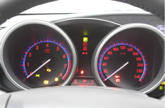 在駕駛界面上還有一個(gè)令人感到耳目一新的設(shè)計(jì)是雙層儀表總成,新一代的Mazda3由原來(lái)的三炮筒式儀表板變成動(dòng)感的雙筒式潛望鏡儀表板,顯得更為年輕活力,配色上亦跟隨睿翼的腳步,以紅、藍(lán)、白三色作為點(diǎn)綴。在潛望式儀表板的后部,一道半圓曲線劃至中控臺(tái)上沿,形成第二層儀表板,車廠將車輛行駛信息和空調(diào)及音響信息兩塊顯示屏放置于此,并通過(guò)方向盤上的十字按鍵組合就可以便捷提取多項(xiàng)油耗及行駛信息,使得駕駛員不用離開前視線的范圍就可以縱覽全局,將更多的注意力集中于車輛駕駛。