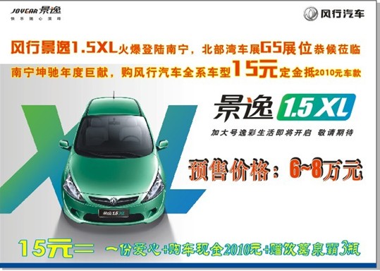 車展期間定購(gòu)風(fēng)行汽車全系車型將可享受15元抵2010元的現(xiàn)金,以及廣西新秀食品有限公司提供的葛泉霸飲品。