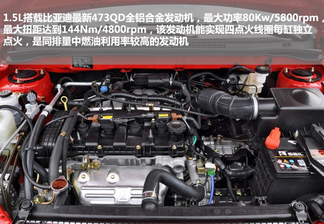 比亞迪G3R目前有1.5MT、1.8CVT兩個排量車型,全系達(dá)到國Ⅳ排放標(biāo)準(zhǔn),無論在動力還是燃油經(jīng)濟(jì)性上都有不俗的表現(xiàn)。其中1.5L搭載比亞迪最新473QD全鋁合金發(fā)動機(jī),最大功率80Kw/5800rpm,最大扭距達(dá)到144Nm/4800rpm,該發(fā)動機(jī)能實(shí)現(xiàn)四點(diǎn)火線圈每缸獨(dú)立點(diǎn)火,是同排量中燃油利用率較高的發(fā)動機(jī)。