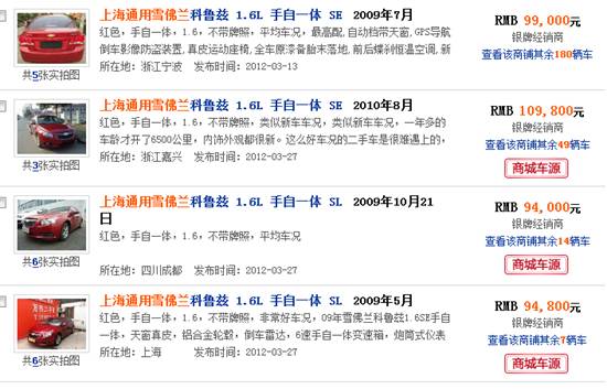 在網(wǎng)上截了個屏,發(fā)現(xiàn)科魯茲的還真是保值的,三年的車,還能賣9萬多,不錯。