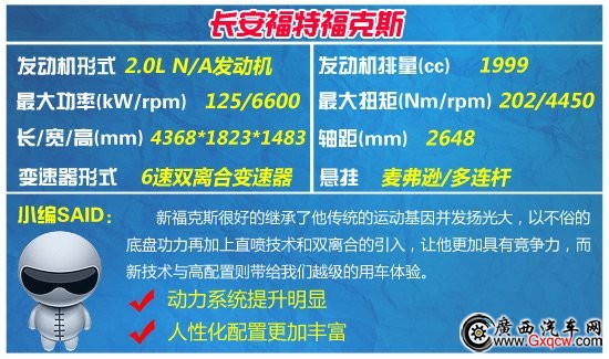 動(dòng)力方面,新的2.0L直噴發(fā)動(dòng)機(jī)配合PowerShift 6速雙離合變速器讓新?怂褂辛速|(zhì)的飛躍。這套動(dòng)力系統(tǒng)并不強(qiáng)調(diào)動(dòng)力的勃然爆發(fā),更多的是展示他良好平順性和經(jīng)濟(jì)性。智能的雙離合變速箱在D擋時(shí)換擋積極,平順性有如CVT變速箱,而進(jìn)入S擋油門到底,變速箱最高可以容忍連降3擋轉(zhuǎn)速接近紅線的沖刺。