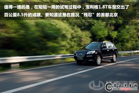 值得一提的是,在短短一周的試駕過程中,寶利格1.8T車型交出了百公里8.5升的成績。要知道這是在路況“殘忍”的首都北京,我不得不感嘆一下目前自主品牌的調(diào)教功力,這樣的數(shù)字一定會讓不少合資品牌汗顏。