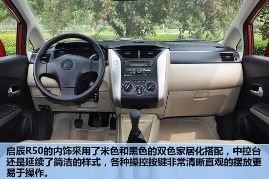 內(nèi)飾方面相比老騏達(dá),R50在中控臺和車門內(nèi)飾板的造型上都有了一定的變化。用料也變的簡單,車廂內(nèi)的氛圍不及老騏達(dá)精致,而是簡單務(wù)實了許多。造型簡單的三幅式方向盤,沒有常見的功能按鍵,也沒有鍍鉻的LOGO,看上去算不上豪華,但日常使用還算順手。