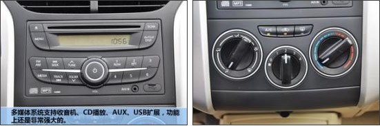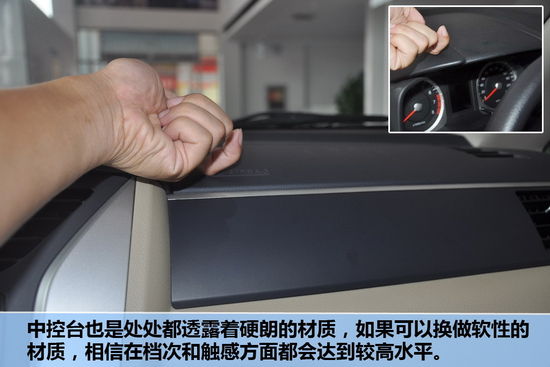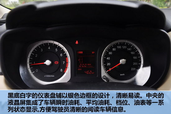 儀表盤設(shè)計簡潔明了,周圍鑲了一圈銀色裝飾,中間的屏幕可以顯示瞬時油耗、平均油耗等信息,實用性很好。中控臺面板兩側(cè)的銀色裝飾算的上是車內(nèi)最花哨的地方了,音響與空調(diào)按照常規(guī)方式排列,操作手感確實不錯。