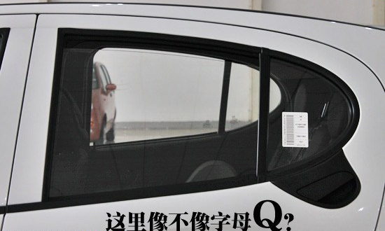 新QQ的車身側(cè)面是整車的亮點(diǎn)之一,后門把手設(shè)計的和前門不一樣,和后車窗是連在一起的,整體看上去像一個字母“Q”,很有特點(diǎn)。而比亞迪F0的前門比較大,所以側(cè)窗的面積也跟著增大,讓視野更加開闊。