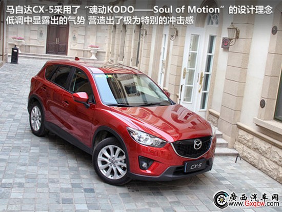 馬自達(dá)CX-5采用了“魂動(dòng)KODO——Soul of Motion”的設(shè)計(jì)理念,完美的演繹了2011年日內(nèi)瓦車展上的概念車Minagi的氣質(zhì)。馬自達(dá)CX-5在整體風(fēng)格上并沒有采用夸張的霸氣,低調(diào)中顯露出的氣勢,營造出了極為特別的沖擊感。長4555*寬1840*高1710mm車身尺寸,將其鎖定在了緊湊級SUV車型。