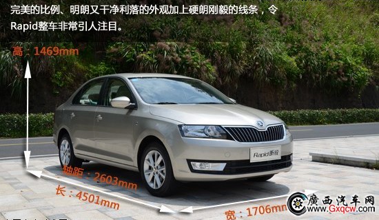 鋒利筆直的棱線勾勒出Rapid昕銳雕塑感的車身,顯得硬朗剛毅。車身尺寸方面,Rapid的長(zhǎng)寬高分別達(dá)到了4501mm1706mm1469mm,而2603mm的軸距,甚至比明銳的2578mm還要長(zhǎng),這也給了后排乘客以更加舒適寬敞的乘坐空間。