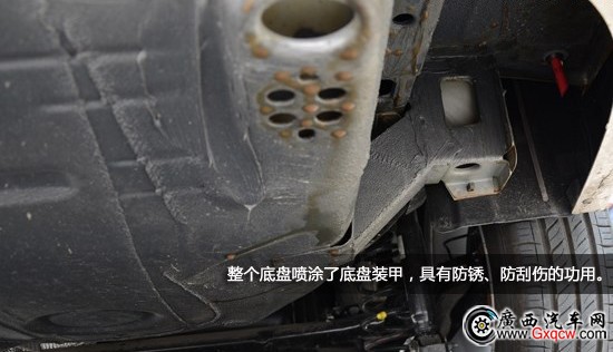 另外,如果大家對(duì)今年央視3.15晚會(huì)有所關(guān)注的話,相信一定會(huì)對(duì)江淮同悅底盤、側(cè)圍生銹的情景觸目驚心;這方面昕銳就做了很好的規(guī)避,整個(gè)底盤包括油箱護(hù)板的位置都噴涂了底盤裝甲,這是一種橡塑膠的合成劑,除了能防銹之后,還能有效的保護(hù)底盤免招飛石等硬物的刮傷。