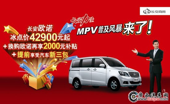 為消費(fèi)者提供最優(yōu)質(zhì)的產(chǎn)品、創(chuàng)造最有價值的誠信服務(wù)是長安汽車一直履行的原則。8月20日至12月31日,長安力量 • MPV普及風(fēng)暴來了!微客價買MPV,前往長安汽車4S店訂購長安歐諾,不僅可以提前享受國家新三包政策,更能以冰點(diǎn)價擁有歐諾1.3L全系車型,最低僅需42900元起!價廉服務(wù)優(yōu),絕對是購買歐諾的最佳時機(jī)!