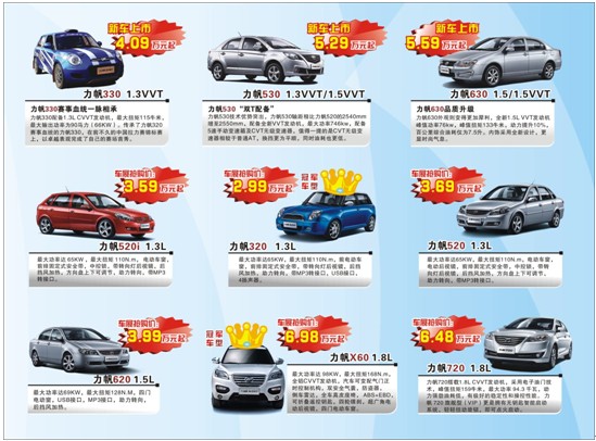 本次汽交會(huì),力帆三款新車330(新款320)、530、630(新款620)將陸繼到店,新車全面接受預(yù)訂。