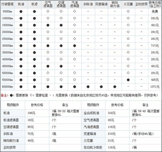 悅動 60000公里所需保養(yǎng)費用總計為:5141元