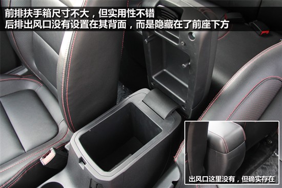 CS35車(chē)身的最高處是在前排車(chē)頂,因此前排乘員的頭部空間十分充裕。前排座椅造型比較動(dòng)感,腰部突出的部分具有一定支撐能力,靠背下部還可通過(guò)座椅側(cè)面的旋鈕進(jìn)行調(diào)節(jié),提供不同的支撐力度。