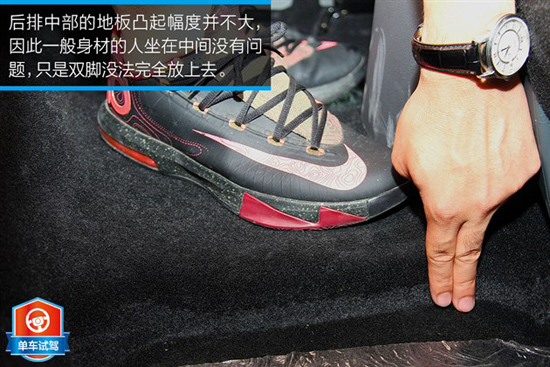 乘坐空間是這款車的強(qiáng)項(xiàng)。我們以身高1.72米的乘客做展示,可以看到頭部和腿部空間的余量,即使對(duì)于1.85米的人來說,乘坐也是毫無壓力。而且這款車的后排地板只有很小的突起,基本上可以說比較平整,使得后排乘客腳部的空間也很寬敞。