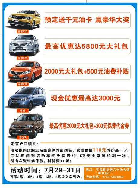 寶駿730預(yù)定送千元油卡,贏豪華大獎(jiǎng)!