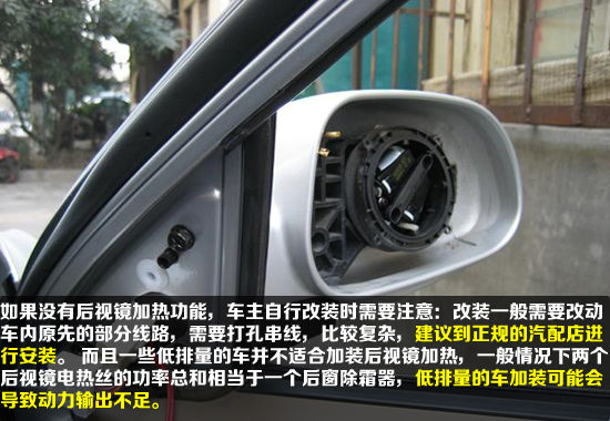 所謂電加熱后視鏡,其實(shí)原理非常的簡(jiǎn)單,就是在兩側(cè)后視鏡的鏡片內(nèi)安裝一個(gè)電熱片(電熱膜),通過(guò)加熱后視鏡來(lái)蒸干表面的水汽。如果車型配置里沒(méi)有后視鏡加熱功能,車主自行改裝時(shí)需要注意:改裝一般需要改動(dòng)車內(nèi)原先的部分線路,需要打孔串線,比較復(fù)雜,建議到正規(guī)的汽配店進(jìn)行安裝。而且一些低排量的車并不適合加裝后視鏡加熱,一般情況下兩個(gè)后視鏡電熱絲的功率總和相當(dāng)于一個(gè)后窗除霜器,低排量的車一旦安裝后可能會(huì)導(dǎo)致動(dòng)力輸出不足。