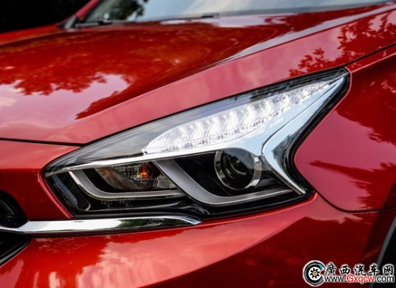 外觀方面,新車與在售車型在外觀上的變化并不大,整體造型仍保持一致。主要的變化在車輛的前大燈和輪轂,前大燈由普通鹵素?zé)粼瓷墳殡瘹獯鬅,輪轂也?8寸增大為19寸。