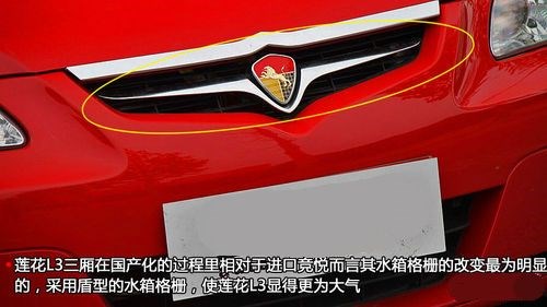 蓮花L3三廂在國產(chǎn)化的過程里相對于進口競悅而言其水箱格柵的改變是最為明顯的,盾型的水箱格柵,使蓮花L3顯得更為大氣,同時大尺寸格柵改善發(fā)動機的通風和散熱效果;而在運動時尚版車型上其還增加車身包圍和車尾部運動尾翼的運動套件,賽車元素平添幾分動感時尚,讓消費者享受卓越的駕駛樂趣;運動型車型也由原來的單排氣管設計,增加到雙排氣管的設計。