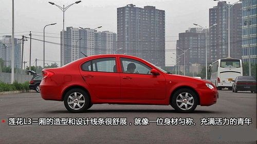 雖然車身并不龐大,但從側(cè)面看,蓮花L3三廂的造型和設計線條很舒展,就像一位身材勻稱、充滿活力的青年,相對較長的發(fā)動機艙使車型更趨向跑車風格,微微上翹的尾部有一種躍躍欲試向前沖的感覺,為整個側(cè)面造型增添了動感時尚的元素。