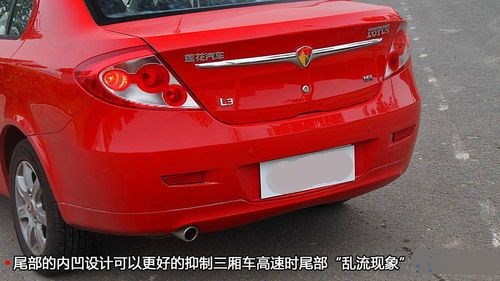 對于蓮花L3三廂車型而言,它外觀上的諸多設計都是為其車輛在行駛中的表現(xiàn)提供的有力幫助。率先應用的蓮花跑車獨創(chuàng)的“邊沿激流動力學”,增加車頂弧度,配合高腰線的前傾設計,符合空氣動力學原理,降低風阻系數(shù),帶來的低油耗和高速行駛時的超強抓地力。