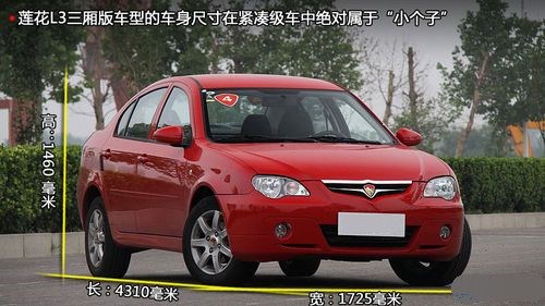 蓮花L3三廂的長寬高為4310毫米/1725毫米/1460毫米。這樣的車身尺寸在緊湊級車中屬于小個子,而正是這樣小巧的身材與其運動風格車型的定位相得益彰。