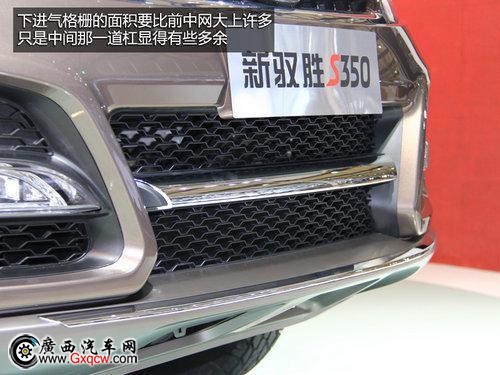 新馭勝S350裝備四輪碟剎、智能倒車?yán)走_(dá)同時(shí),超標(biāo)配置一鍵啟動(dòng)、多功能方向盤、全新科技儀表盤、觸摸式液晶中控臺(tái)、前后可調(diào)中央扶手、定速巡航等高端內(nèi)飾裝配一應(yīng)俱全。新馭勝S350**采購(gòu),協(xié)同優(yōu)質(zhì)供應(yīng)商打造創(chuàng)新suv,新馭勝S350開(kāi)創(chuàng)了SUV柴油自動(dòng)檔,符合歐洲環(huán)保,節(jié)約理念,極致動(dòng)力,高扭矩:采用路虎衛(wèi)士同款發(fā)動(dòng)機(jī),福特技術(shù)Topanther VGT 柴油發(fā)動(dòng)機(jī)。**知名埃孚6速手自一體變速箱,與寶馬3系、5系同款,相比一般5速自動(dòng)變速器,油耗節(jié)約8%,加速性能提升4%,重量減輕12%。新款馭勝綜合油耗僅為8升,**同級(jí)的油耗。