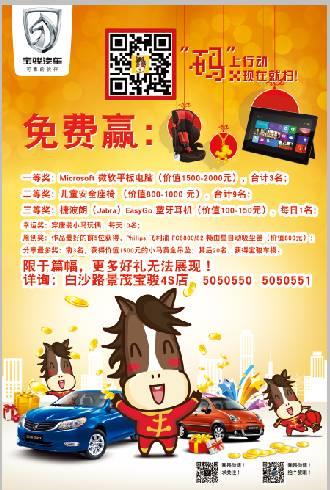 2014年迎春接福,寶駿一馬當先!白沙路景茂店與上汽通用五菱聯(lián)合開展“碼”上行動!928份禮品等你來贏!