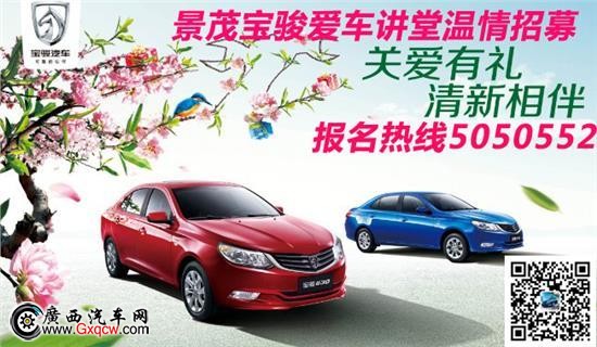 景茂寶駿2014年**期車主講堂,定于3月1日(周六)上午10:30,在白沙路寶駿4S店,馬上開講啦,活動旨在幫助廣大寶駿車主了解更多的用車養(yǎng)車知識,讓您更好的感受駕駛的樂趣暢享精彩車生活,有興趣參與此活動的寶駿車友,歡迎撥打招募熱線0772-5050552,或關(guān)注官方微信“baojun5050550”進(jìn)行報名。