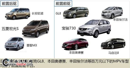 前驅(qū)還是后驅(qū)?相信很少人會刻意關(guān)注這項(xiàng)參數(shù),但對于MPV車型來說,不同的驅(qū)動形式卻能帶來不同的產(chǎn)品屬性。很明顯,五菱宏光、風(fēng)行菱智這類宜商宜家的MPV車型選擇前置后驅(qū),是為了加大扭矩輸出效率,進(jìn)一步加強(qiáng)載物能力和燃油經(jīng)濟(jì)性。而寶駿730則更加注重駕乘過程中的實(shí)用性和舒適性,所以使用了主流高端MPV的前置前驅(qū)平臺,目前市場上的類似別克GL8、本田奧德賽、日產(chǎn)貴士等百萬元以下的MPV車型均源于此驅(qū)動形式的平臺。