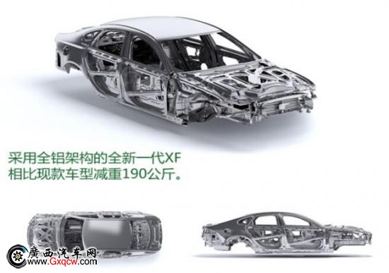 全鋁制架構(gòu)車身是全新XF的另一大賣點,除了增加車身強度外相比現(xiàn)款車型減重多達190公斤,全車整備質(zhì)量相比同級別對手輕了不少,對于操控和燃油經(jīng)濟性的提升有一定幫助。