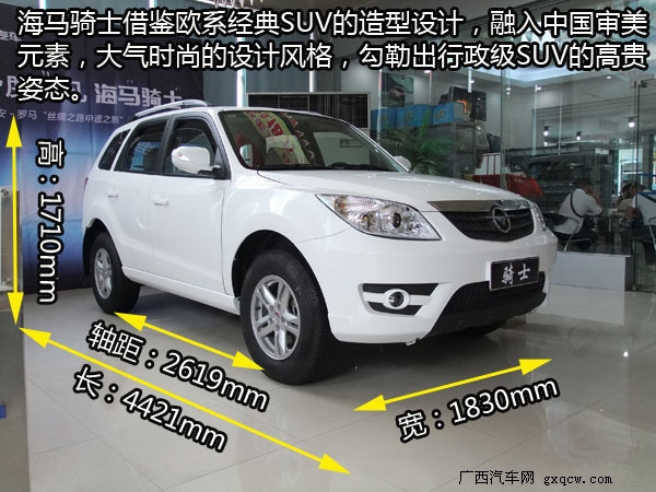海馬騎士借鑒歐系經(jīng)典SUV的造型設(shè)計(jì),融入中國審美元素,大氣時尚的設(shè)計(jì)語言,勾勒出行政級SUV的高貴姿態(tài)。與擁有從容大氣的風(fēng)度、樂觀果敢的態(tài)度、灑脫不凡的氣度的新一代商務(wù)精英相得益彰。騎士的外形讓初見它的人無不眼睛一亮,時尚、大方、車身曲線流暢圓潤,空間緊湊但又不顯局促,后排座椅隨意調(diào)整可營造出超大空間。車頂貫穿到后尾燈的行李架不僅僅是裝飾品,更有載物方便的實(shí)用性。