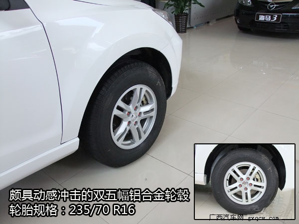 騎士的輪轂設(shè)計(jì)業(yè)相當(dāng)有個性的,頗具動感沖擊的雙五幅鋁合金輪轂,輪胎規(guī)格為:235/70 R16。