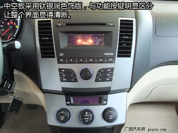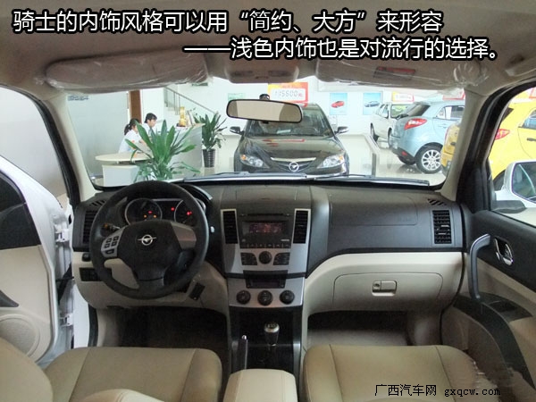 騎士的內(nèi)飾風(fēng)格可以用“簡約、大方”來形容――淺色內(nèi)飾也是流行的選擇。中控板采用鈦銀屬色飾板,這樣的設(shè)計(jì)在日系車中也不少見。采用電動門窗,且化妝鏡帶雙照明功能,設(shè)有頂置眼鏡盒和后艙卷簾等,很體貼、方便?梢灶A(yù)見,海馬騎士將給目前的SUV市場帶來一股強(qiáng)勁的風(fēng)潮。