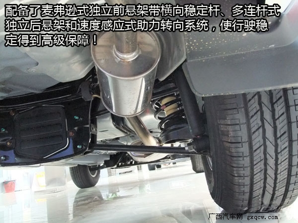 騎士配備了麥弗遜式獨(dú)立前懸架帶橫向穩(wěn)定桿、多連桿式獨(dú)立后懸架和速度感應(yīng)式助力轉(zhuǎn)向系統(tǒng),使行駛穩(wěn)定得到高級保障。