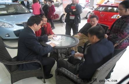 銷售人員和海馬“粉絲”簽單現(xiàn)場(chǎng)