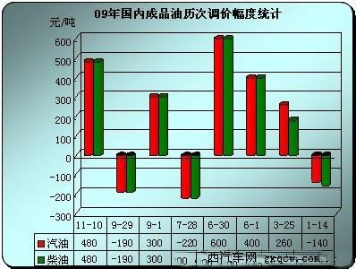 2009年我國汽柴油價(jià)格累計(jì)上漲了1520元和1390元,漲幅均為27%左右。而同期國際市場的原油價(jià)格,從年初的每桶40美元左右,上漲到目前每桶73美元左右,漲幅達(dá)到了82.5%。