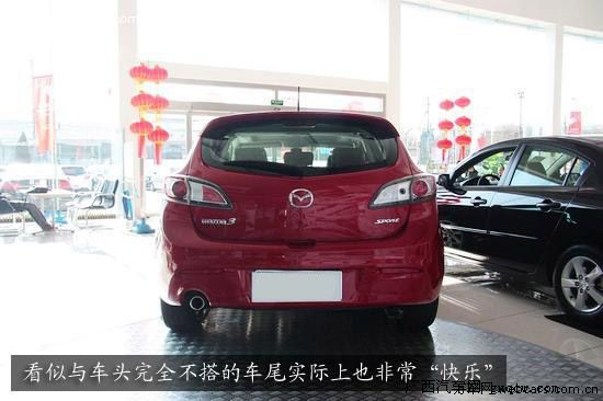 如果說新馬自達(dá)3兩廂前臉只屬于“靜態(tài)”動感的話,那么新馬自達(dá)3兩廂的側(cè)面則屬于“動感”動感。本來兩廂造型已經(jīng)足夠“鋼炮”,但馬自達(dá)3兩廂仍不滿足,側(cè)面肌肉感十分強(qiáng)烈而較高的車身腰線讓運(yùn)動體現(xiàn)的淋漓盡致。相比這么動感的側(cè)面而言,尾部看上去非!捌降保(xì)細(xì)品味之后,則發(fā)現(xiàn)尾部同樣很運(yùn)動。