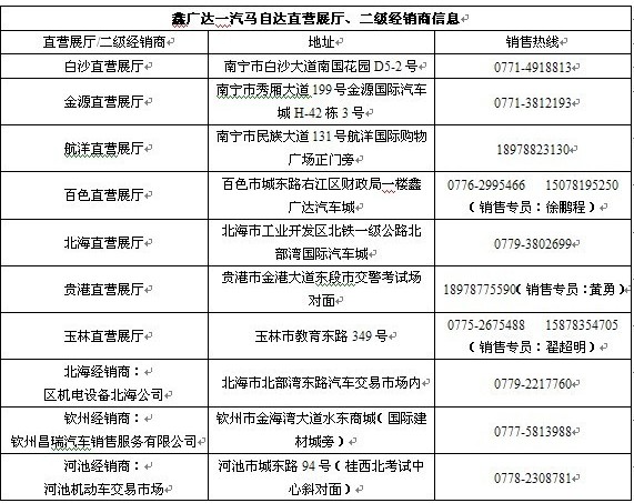 一汽馬自達廣西經銷商:廣西鑫廣達汽車銷售服務有限公司