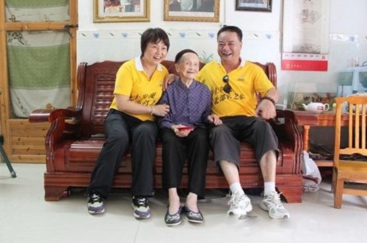 海馬?凳昀系贶囍魇Y先生一家與巴馬108歲老人合影