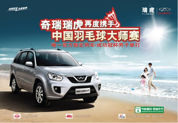 繼2009、2010年連續(xù)兩屆成功贊助大師賽之后,瑞虎本次再度成功攜手大師賽,成為賽事各方密切關(guān)切的焦點(diǎn)。據(jù)介紹,除榮膺“大師賽唯一指定官方用車”之外,瑞虎還成功冠名男子單打比賽,直接參與到大師賽的焦點(diǎn)之戰(zhàn)。接下來,隨著2011年中國羽毛球大師賽正式開戰(zhàn),將有10輛瑞虎1.6DVVT車型24小時(shí)待命,肩負(fù)起賽事期間各國運(yùn)動員、教練員的交通運(yùn)輸工作,為大師賽保駕護(hù)航。