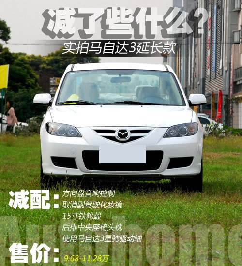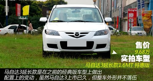 國產(chǎn)馬自達3自2006年推出以來,如今已有5個年頭,加之它的換代車型馬自達3星騁剛剛上市,馬自達3也到了產(chǎn)品升級的時候了。近日,馬自達3推出延長款車型,相比現(xiàn)款經(jīng)典版車型配置有所縮水,但車價同步降低,售價區(qū)間為9.68-11.28萬元。