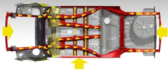 除了最堅(jiān)固的材料,整車安全結(jié)構(gòu)的設(shè)計(jì)也至關(guān)重要,對于撞擊力的吸收、分解有著不容忽視的作用。 508采用歐洲最先進(jìn)的車身設(shè)計(jì)理念,球籠式座艙由底部縱向 6 道縱梁、5 道橫梁,左右側(cè)各 3 道加強(qiáng)梁、頂部 3 道橫梁構(gòu)成。該結(jié)構(gòu)將駕乘人員完整的包含于超強(qiáng)框架以內(nèi),能有效地將座艙內(nèi)人員與外部碰撞隔絕,最大限度的保護(hù)乘員安全。高速碰撞時(shí),球籠式立體防撞座艙能最大限度的阻止外力侵入,使得乘客贏得最大的逃生空間。更值得一提的是,在同級車型通常都采用2級或3級潰縮時(shí),508便運(yùn)用了保護(hù)措施明顯優(yōu)于競品的4級潰縮吸能式轉(zhuǎn)向柱,其優(yōu)勢在于,汽車在發(fā)生正面碰撞時(shí),部分支柱收縮、部分支柱會(huì)直接反向斷裂,駕駛員下肢受傷的可能性就會(huì)大大降低。