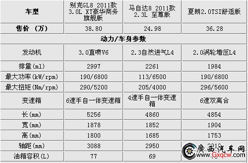 三款車型中從價格看性價比最高的是馬自達8,動力系統(tǒng)在里面稍顯落后,但是作為MPV主要是 舒適為主所以也夠用。軸距方面出于其他兩車中間。別克GL8的動力系統(tǒng)在高級感方面更好,V6直噴發(fā)動機在動力儲備和平順性方面更好。軸距延續(xù)上代車型的 強大,空間方面不用擔心。夏朗擁有強勁的動力系統(tǒng),配備給MPV車型可以在行駛的時候給駕駛者更多的信心,在滿載或者超車時更加能體會到,軸距在三車中是 最小的。