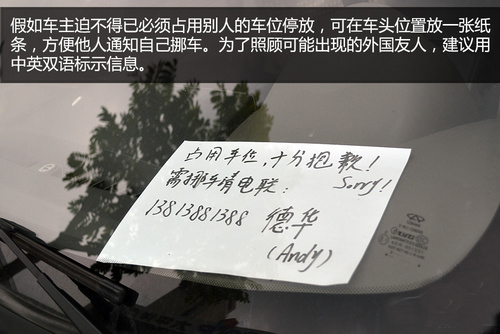 解決方法:這種行為同樣要靠車主自覺,時刻提醒自己要做一名有素質(zhì)的車主,損人利己的事情干多了,遲早遭報應(yīng)。假如車主實在沒有辦法,只能冒著被人砸車的風險將車停在小區(qū)內(nèi)的禁停區(qū),也別忘了在車窗顯眼位置附上一張紙條,寫上自己的姓名和聯(lián)系方式,還有抱歉的話。這樣做,既能讓別人及時通知你挪車,也能讓人消消氣,把負面影響降至最低。
