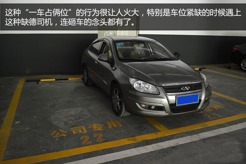當你在小區(qū)內(nèi)苦苦尋覓車位時,好不容易才找到一個車位,卻發(fā)現(xiàn)這個車位被旁邊的車占了,位置根本不夠停,砸車的念頭又冒出來了。這種霸道的停車行為,在并列式車位中相當常見。最霸道的要數(shù)將車停在兩個車位中間,剩下的空位連smart都難進;還有車主喜歡將車壓線停放或打斜停放,旁邊的空位即使能停車,別人也開不了車門。
