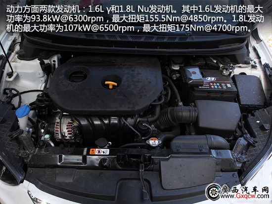 動力方面兩款發(fā)動機:1.6L γ和1.8L Nu發(fā)動機。其中1.6L發(fā)動機的最大功率為93.8kW@6300rpm,最大扭矩155.5Nm@4850rpm。1.8L發(fā)動機的最大功率為107kW@6500rpm,最大扭矩175Nm@4700rpm。在變速箱方面也是雙六的組合:六速手動變速箱或者六速手自一體變速箱,結合北京現(xiàn)代主動式ECO經濟駕駛模式,使朗動在同級車中擁有不錯的燃油經濟性。