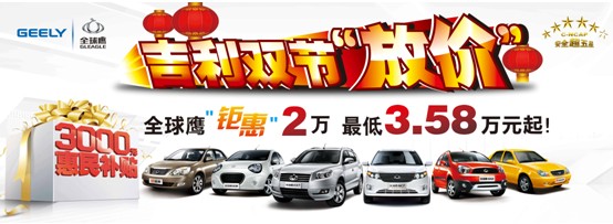 編輯了解到,迎中秋慶國慶,吉利感恩回饋雙節(jié)“放價”,9.29-10.2號廣西第二十屆汽交會期間,吉利全球鷹攜全系車型參展,全系惠民3000元!全球鷹熊貓3.58萬元起!新遠景4.99萬元起!新自由艦3.98萬元起!GX2僅售4.98萬元起!中級家轎全球鷹GC7新品上市售價6.69萬元起!吉利首款超五星安全SUV全球鷹GX7僅售9.29萬元起!同時,車展期間凡現(xiàn)場訂購車客戶即可參與抽獎返現(xiàn)金活動,最高返現(xiàn)500元!南寧開河全球鷹B11號展位恭候您的光臨,詳詢0771-3136158