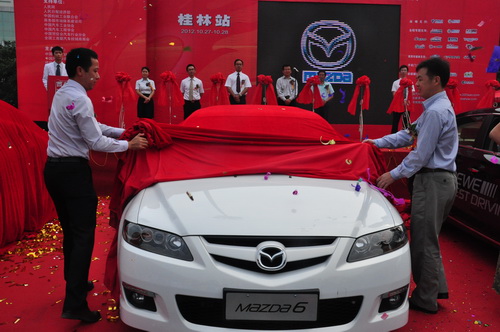 據(jù)桂林鑫廣達(dá)博達(dá)汽車銷售服務(wù)有限公司譚寧經(jīng)理介紹,一汽馬自達(dá)品牌在桂林市的銷售非;鸨S绕涫邱R6,是一汽馬自達(dá)的明星車型,受到很多桂林市民的喜愛!斑@次我們參加西部巡展還為桂林市民帶來了超乎想像的優(yōu)惠!