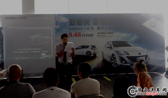 上市會現(xiàn)場,長安馬自達(dá)廣西弘駿店銷售經(jīng)理陳經(jīng)理為本次活動致辭及做新車介紹:陳經(jīng)理表示:“新星騁的價值不僅體現(xiàn)在產(chǎn)品力的各項提升,更是長安馬自達(dá)基于馬自達(dá)品牌全球質(zhì)量管理標(biāo)準(zhǔn)、立足國內(nèi)消費者特點,實施特色精品戰(zhàn)略的又一成果”。